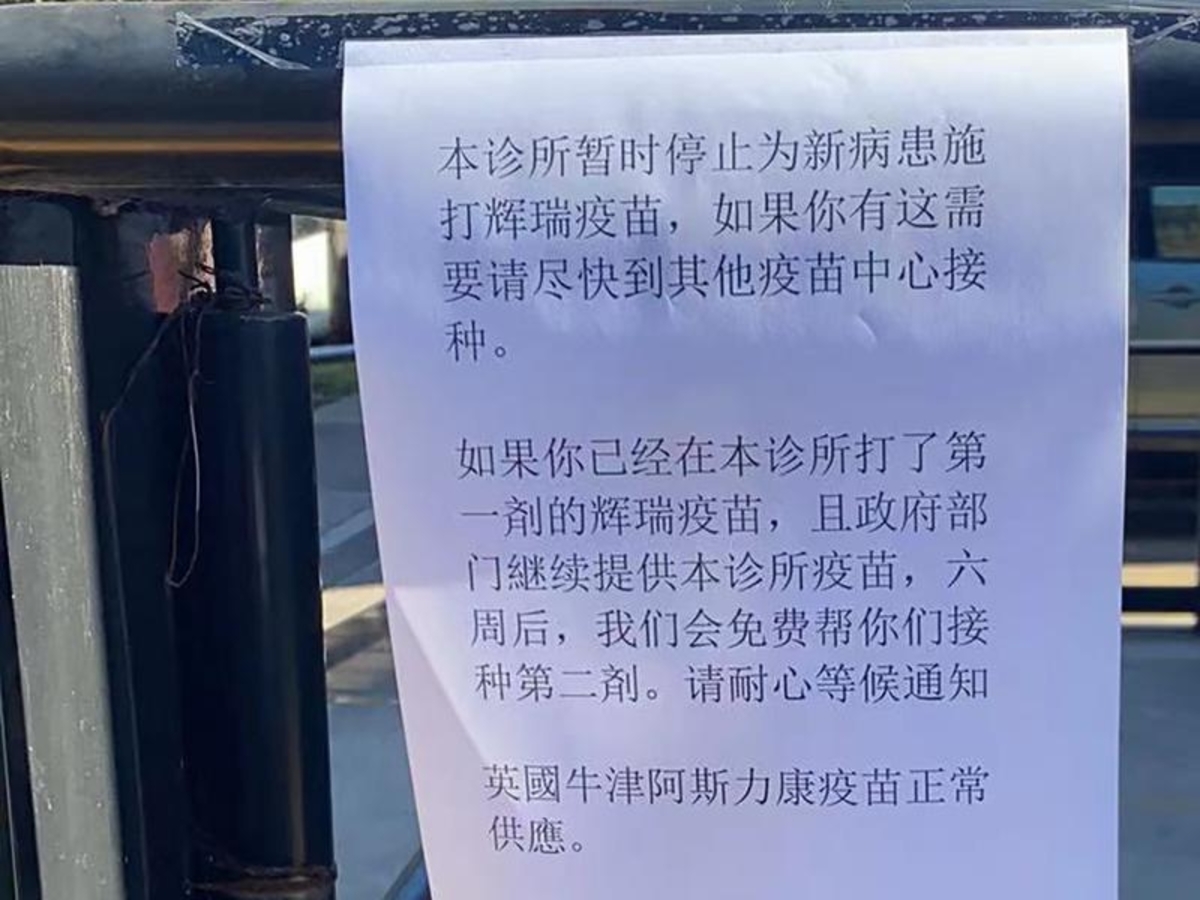 Chinese-language signs outside the two clinics last week suggested the government may stop providing the clinic with further Pfizer vaccines.