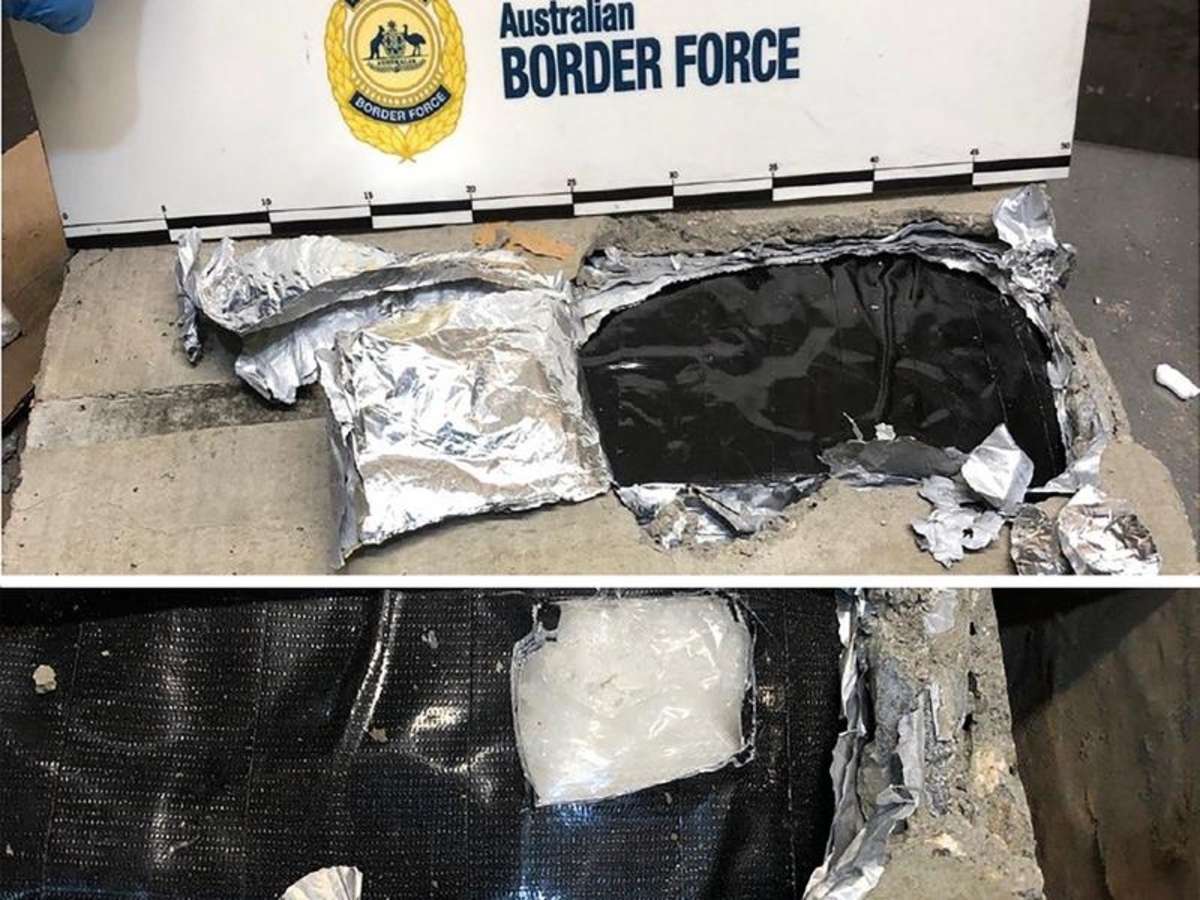 Australian Federal Police said it was found to contain four kilograms of an unknown substance concealed within a concrete block.