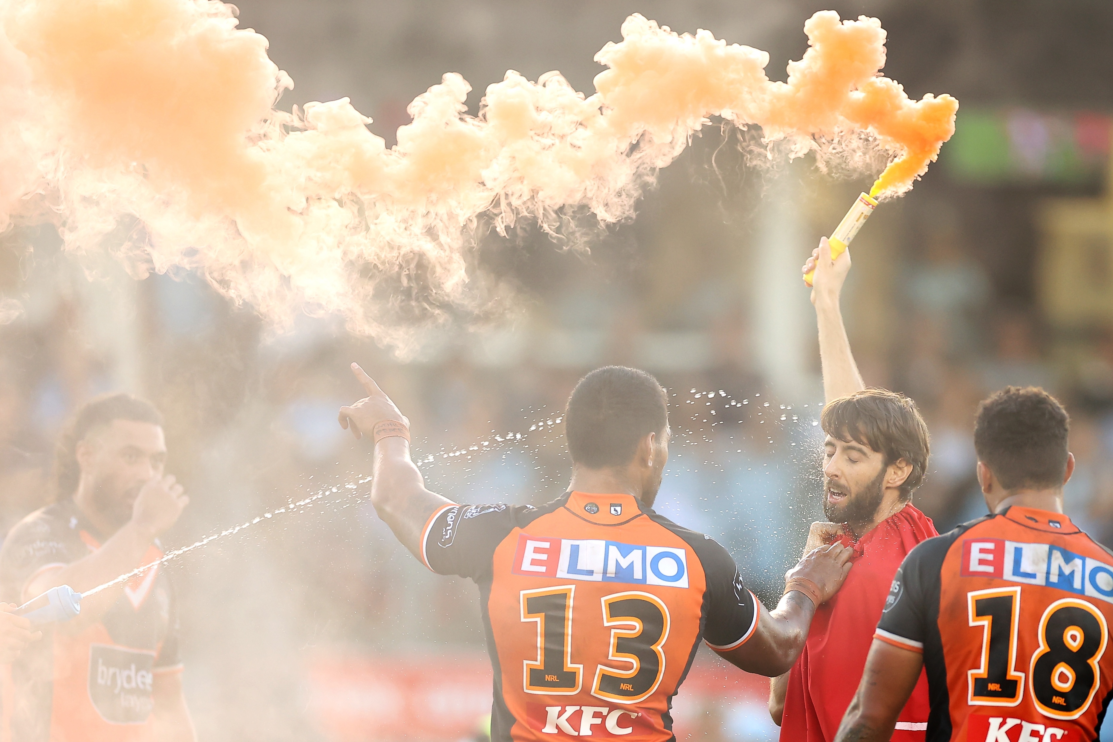 Play was stopped for several minutes during the Tigers vs Cronulla match on Sunday evening at Woolware before the man was escorted off the field by security.