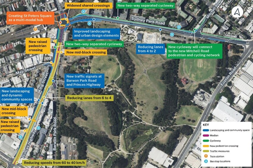Infrastructure, Cities and Active Transport Minister Rob Stokes said St Peters and Newtown would benefit hugely from the changes, with six lanes of traffic shrinking down to four.