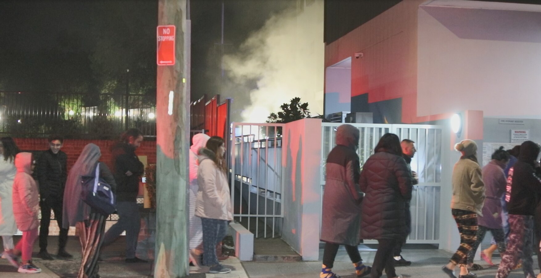 Smoke was billowing from the car park, while residents from the block of units at Railway Tce, Merrylands, waited on the street.