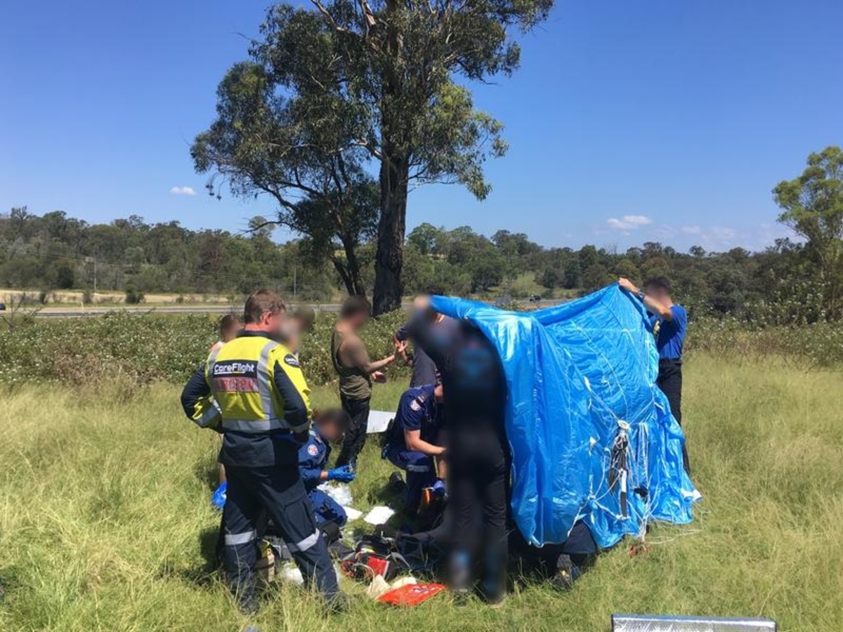 Emergency services, including a rescue helicopter, were called to the paddock in Wilton, southwest of Sydney, just before 2pm on Thursday.