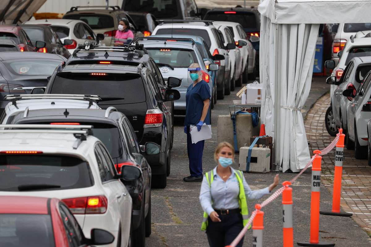 Even at Bondi Beach, 45 km (28 miles) away from the coronavirus flare-up, drivers queued bumper-to-bumper in long lines around the famous beachfront waiting to get into a drive-through testing centre.