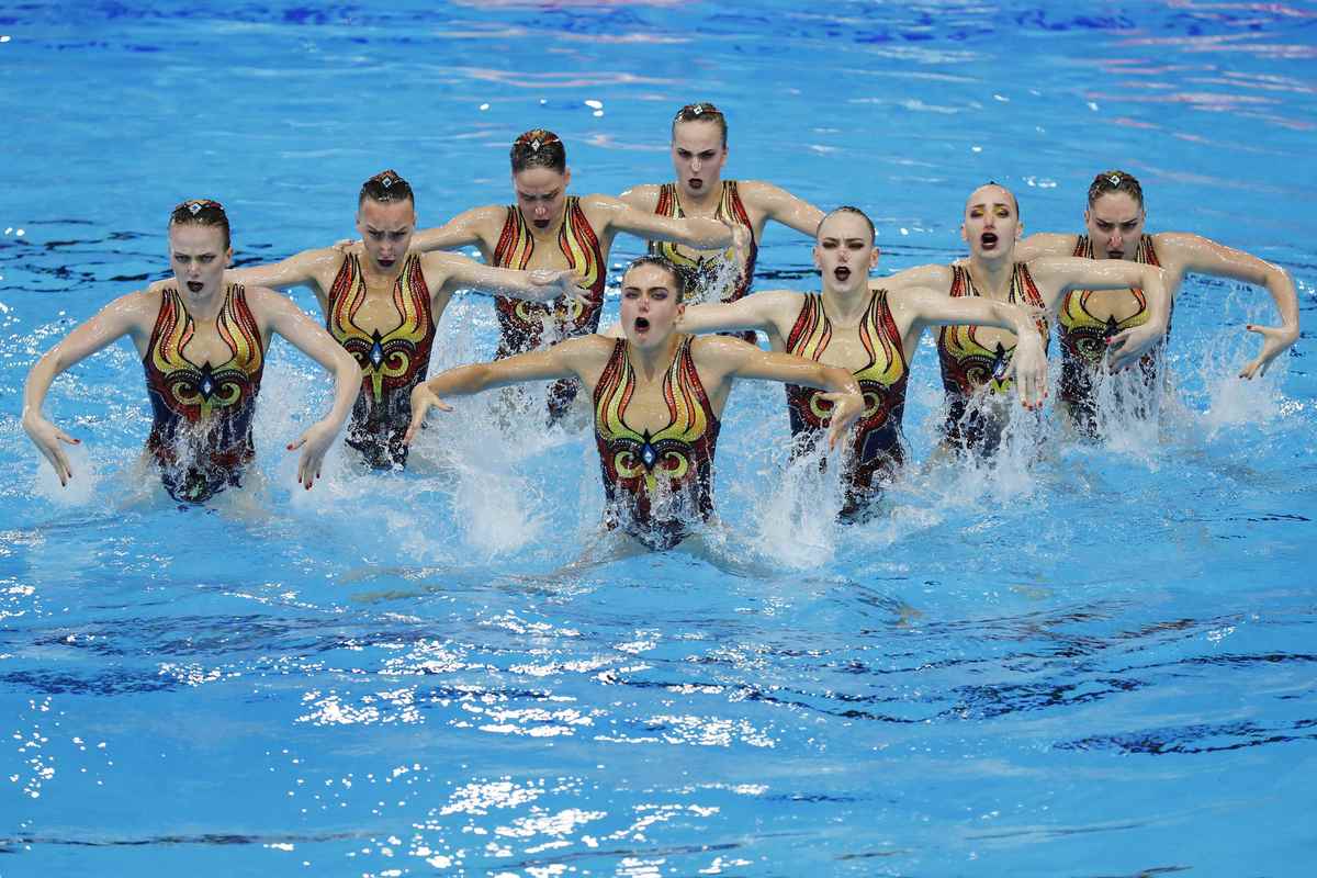 The Russian team landed the team free title, with gold medals awarded to a nine-strong outfit -- Anastasia Arkhipovskaia, Anastasia Bayandina, Daria Bayandina, Marina Goliadkina, Veronika Kalinina, Polina Komar, Maria Shurochkina, Darina Valitova and Mikhaela Kalancha.