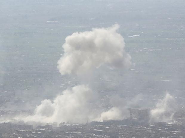 State TV showed thick clouds of smoke rising from Douma, where Jaish al-Islam is holding out after insurgents in other parts of eastern Ghouta accepted offers of safe passage to rebel-held areas in the north of the country.
