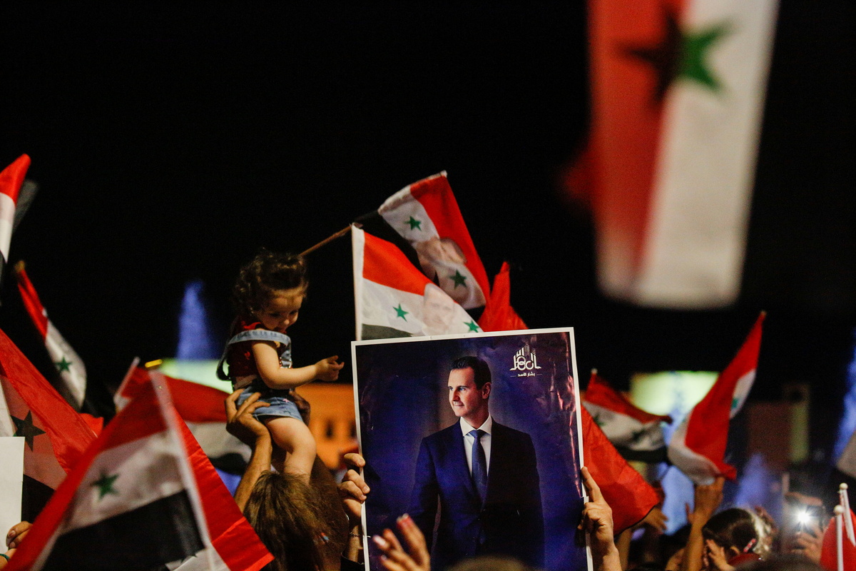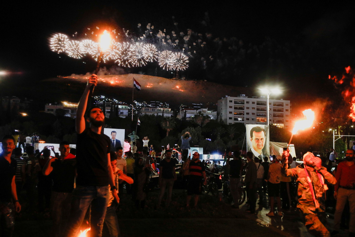 Rallies with thousands of people waving Syrian flags and holding pictures of Assad while singing and dancing took place all day Thursday in celebration of the election.