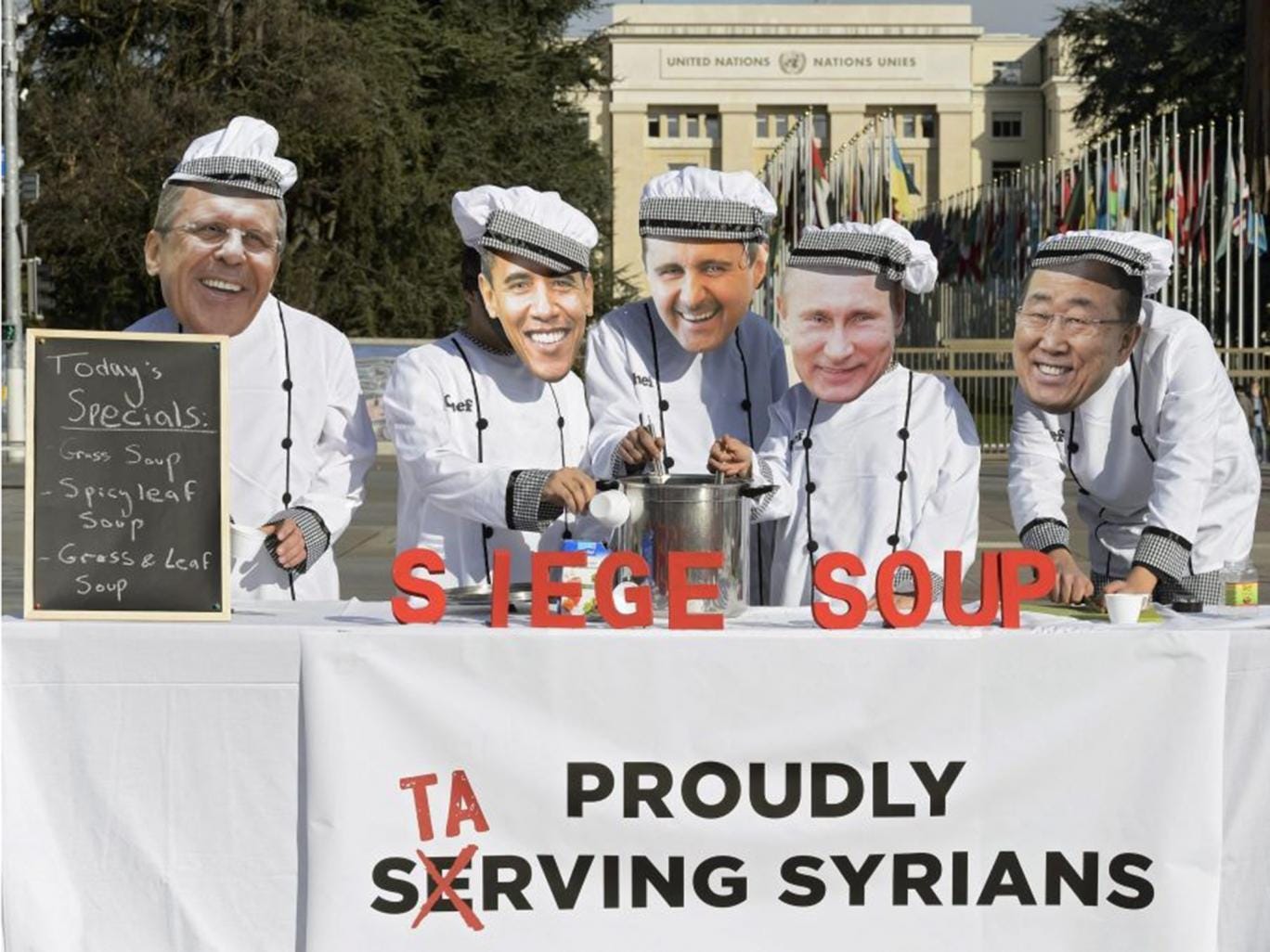 It set the tone for a chaotic start to the UN-led negotiations. The opposition started the day sticking to a pledge to boycott the event unless the bombing of civilian areas was halted and food allowed to reach besieged towns.