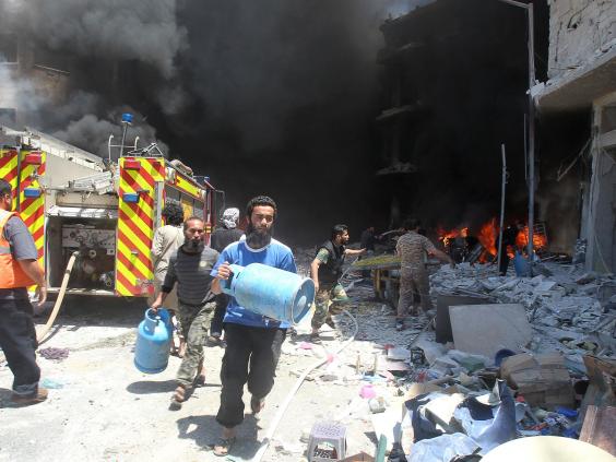 The airstrikes in the northwestern Idlib province struck a crowded market and an apartment block, and came despite reports that a local truce between the government and insurgents had been renewed.