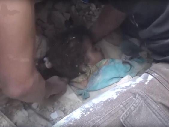 A young girl has been pulled alive from the rubble of a building destroyed in air strikes in Aleppo as the devastated Syrian city comes under attack for a second day.