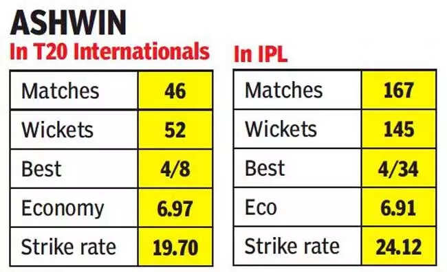 The 35-year-old off-spinner's T20 appearances in the last four years have been limited to the Indian Premier League and for his home state, Tamil Nadu. In that period, Ashwin went from the ace in the pack to one of many cards in the deck.