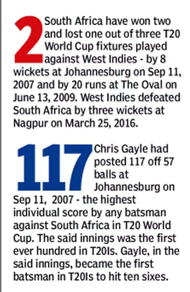 Perhaps still left shell-shocked after collapsing to an embarrassing 55 against England in their opener, the West Indies will hope to put their campaign back on track when the defending champions take on South Africa, who themselves haven't enjoyed the best of starts, having lost to Australia.
