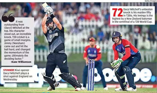 Mitchell then embraced the spotlight by hammering Chris Woakes for the 20 needed in the 19th over to help New Zealand make the first final in the T20 World Cup and slay the ghosts of Lord's, at least partially. He would have also put IPL franchises on notice.