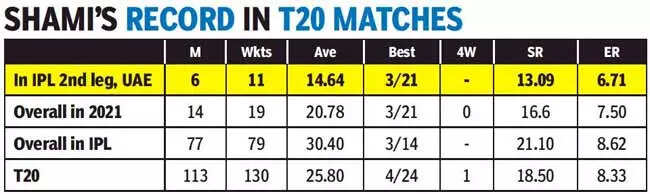 Shami's recent record in IPL, though, suggests something else. In six matches for Punjab Kings in UAE, Shami took 11 wickets at an average of 14.64 and an economy rate of 6.71. So, if current form has to be taken into account, Shami, along with Jasprit Bumrah, will be the two bowlers who will walk into the team every day.