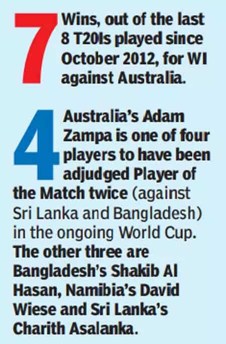 West Indies, the two-time T20 World Cup champions, can be a potential banana skin for the Aussies. The Windies are “hurt” and will look to salvage some pride in a game that is going to be the last “together” for a bunch of T20 greats.