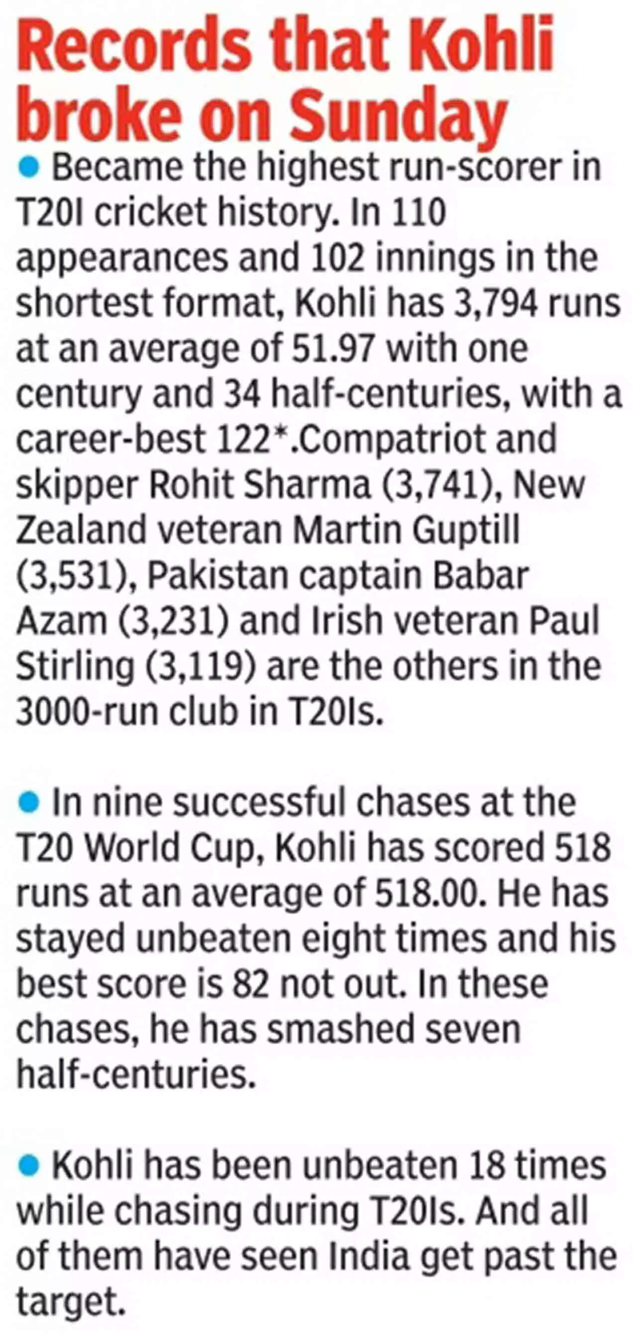 Sunday was the 18th time Kohli remained unbeaten in a T20 chase. It was also when he shed the baggage of a near-three-year slump in form which now, finally, can be said to be a thing of the past.