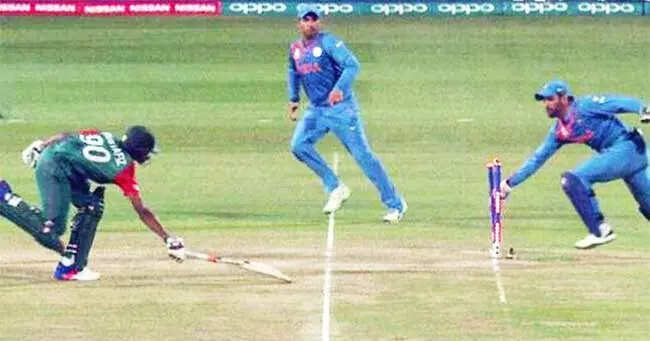 An alert Dhoni collected the ball with his glove-less right hand, but did not throw. As the Bangladesh batters ran to collect a bye which would have tied the match, the extremely fit MSD sprinted up to the stumps and whipped off the bails. Mustafizur Rahman, who was running to the batting end was run out thanks to Dhoni's presence of mind and on-field brilliance. He had helped India snatch a 1 run win from the jaws of defeat.
