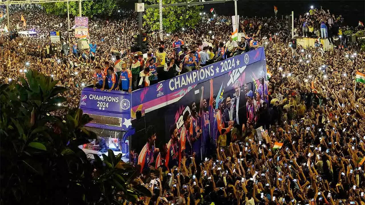 The sea looked bluer on the reclaimed-land side on Thursday evening. After their delayed departure from Barbados due to a hurricane, Rohit Sharma's T20 World Cup winning Team India returned home to a different kind of storm with cricket-crazy Mumbaikars filling the stretch from Nariman Point to Wankhede stadium and making the open top bus carrying India's cricket heroes happily, gently and proudly cut through the surging sea of admirers, each eager for a glimpse of the champions.