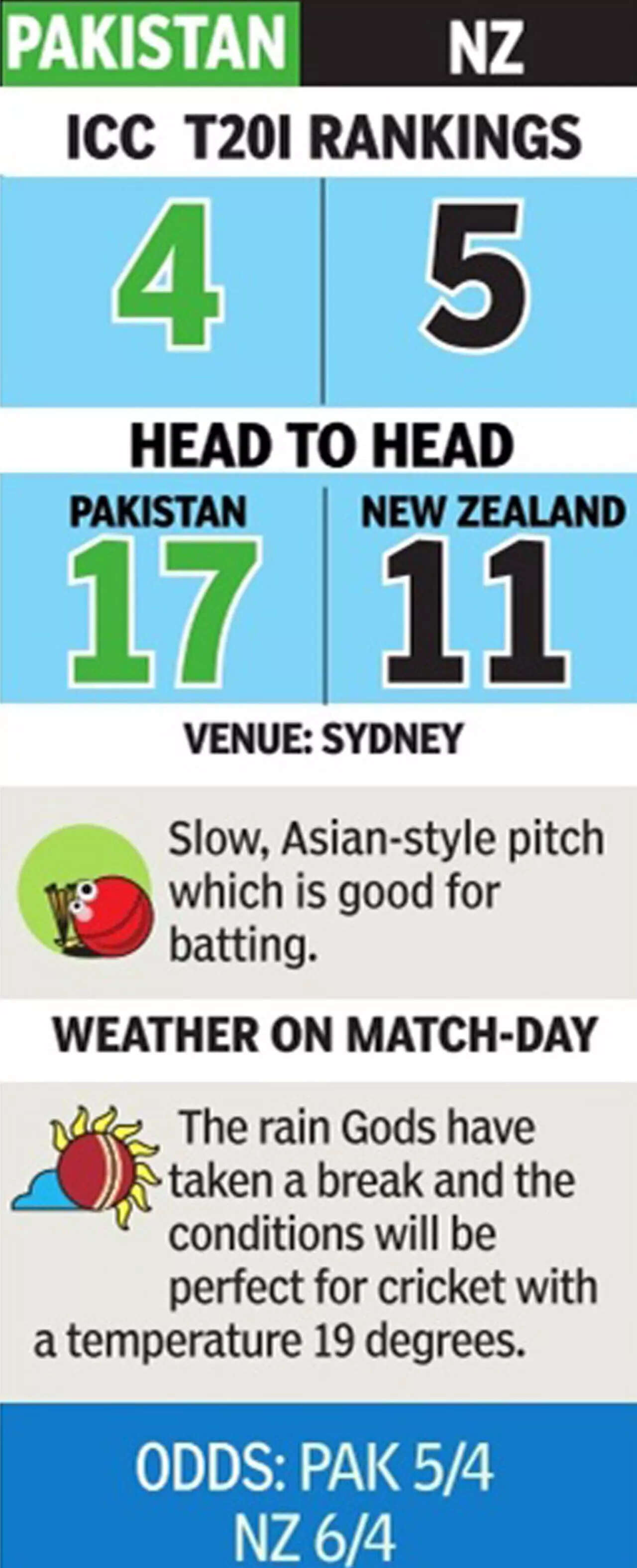 Pakistan could carry a slight psychological advantage – they recently won a T20 tri-series in New Zealand hammering the hosts in the final