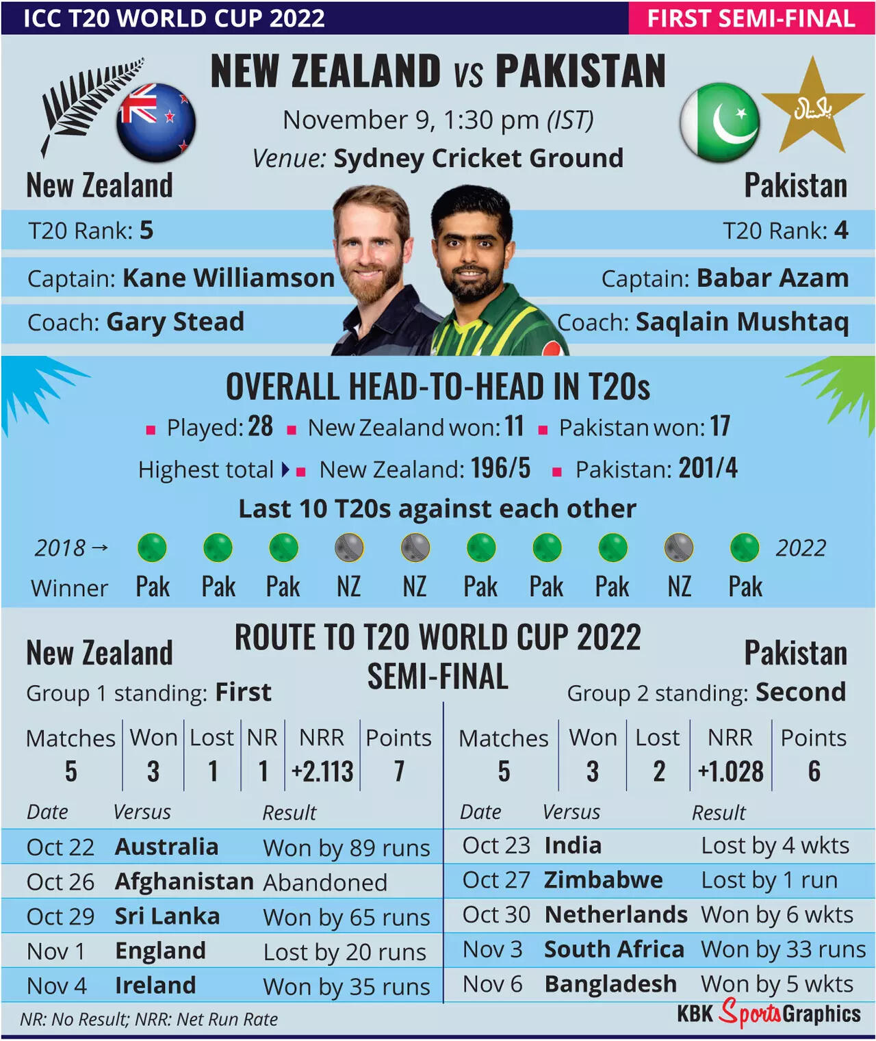 The respect, though, is mutual. Pakistan team mentor Matthew Hayden said: "I even played against (Tim) Southee. That goes to show you how much experience that team has got... Ferguson has great pace, lots of experience in T20 cricket as well, so poses good threats. And they've got good off-pace bowling as well," Hayden said.