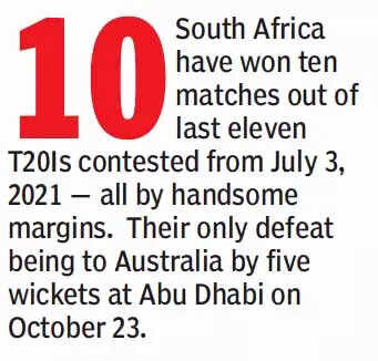 The win was sweet revenge for SA against a team they had lost to by 21 runs to in the '19 World Cup in a high-scoring game at The Oval. Placed second in Group 1, South Africa -after notching up their third win in four games - enjoy a better net run rate (0.742) than Australia, who're on the third spot with an NRR of -0.627. If they beat England on Saturday in Sharjah in what will be a virtual quarterfinal for them, SA should be through to the semis.