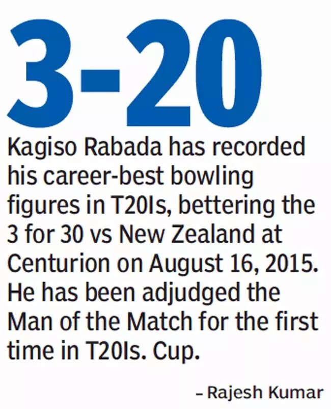 Firing on all cylinders on a wicket which aided his key weapons - late swing and vicious bounce, the 26-year-old fast bowling superstar ripped the heart out of Bangladesh's top order, taking three wickets in five balls in a spell which saw him on the verge of a hat-trick. Delivering four overs of high-quality pace, Rabada bowled 14 dots, finishing with three for 20.
