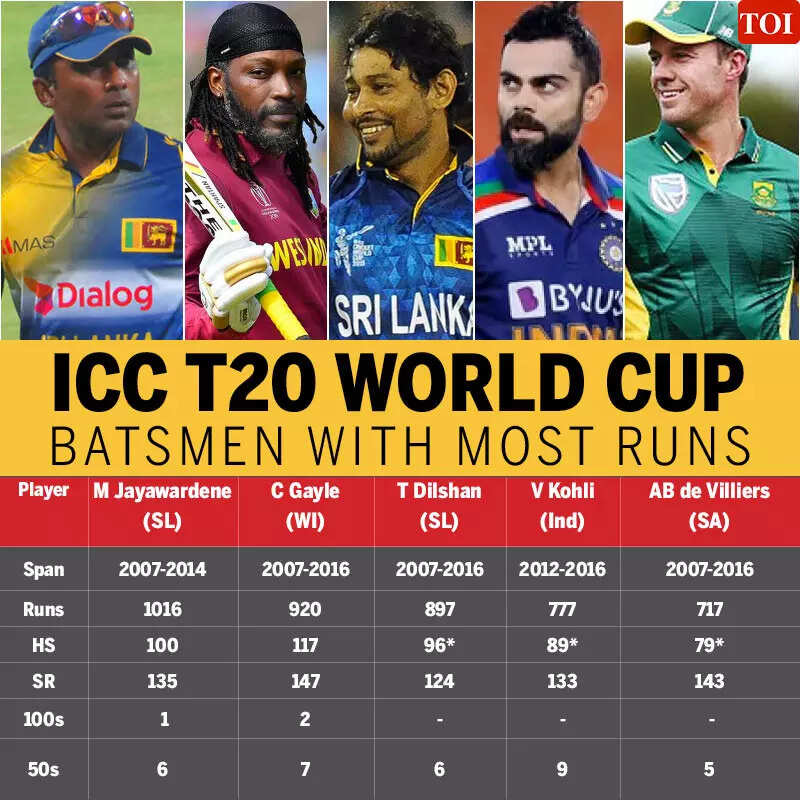 Here's a look at the top five most successful batsmen at the T20 World Cup over the years: