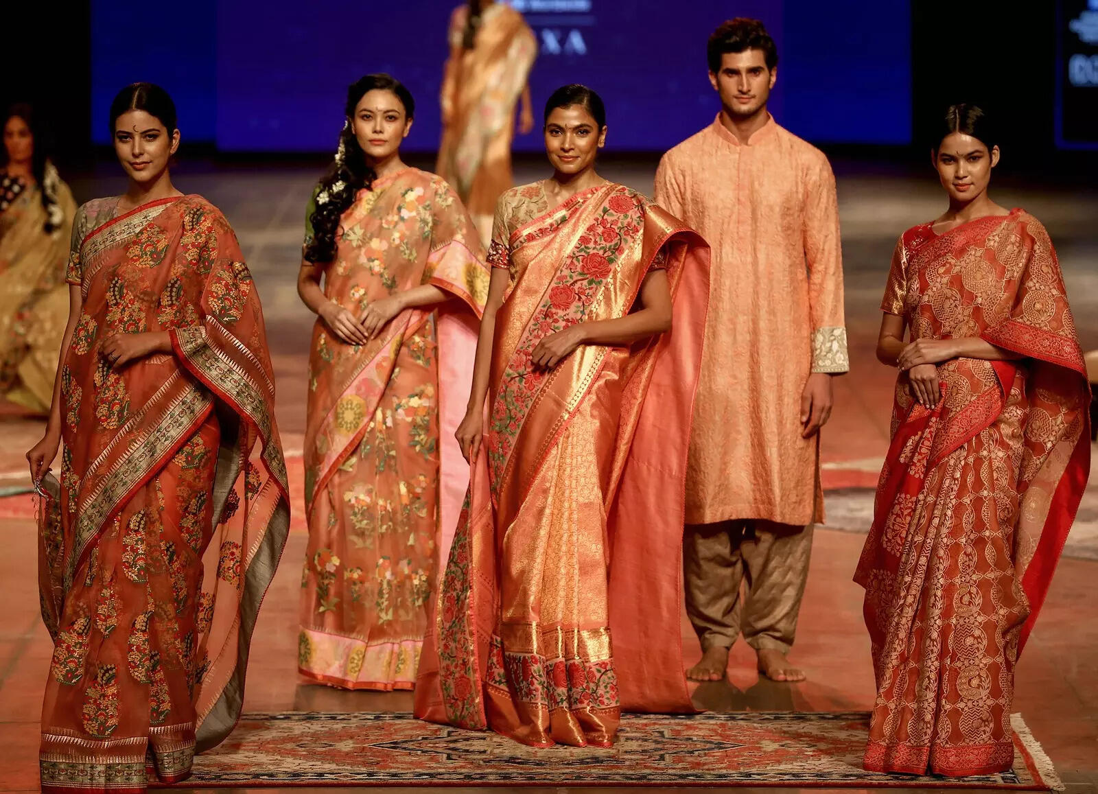 The Jamdani from each region revealed its characteristic look as the specialty from Kashmir reflected the serene tranquil nature of the valley. Detailing was visible from Paithan, while creative craftsmanship was seen in the weaves from Benaras. The merger of tradition and modernity came alive in the collection from Kota, while the weaving combination of Khadi from Srikakulam, luxury from Uppada and Venkatgiri, brought a hypnotic touch to the line up.