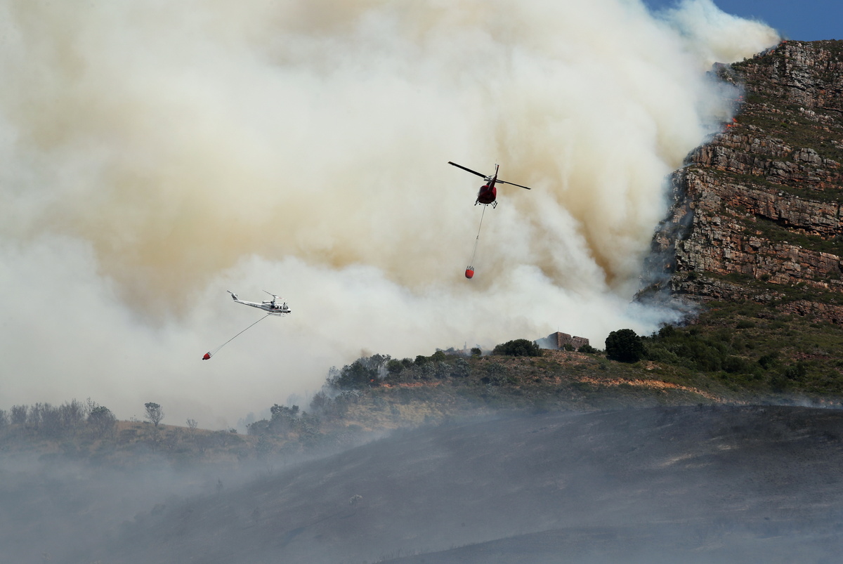 A wildfire on the slopes of South Africa's Table Mountain forced University of Cape Town students to evacuate on Sunday, as runaway flames set several campus buildings ablaze and firefighters used helicopters to water-bomb the area.