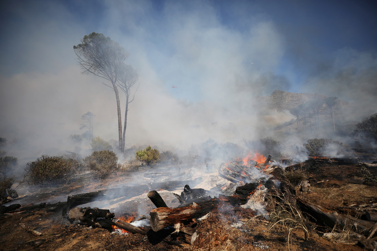 The fire started early on Sunday near a memorial to politician Cecil Rhodes, located on Devils Peak, another part of Cape Town's mountainous backdrop, before spreading rapidly up the slopes.