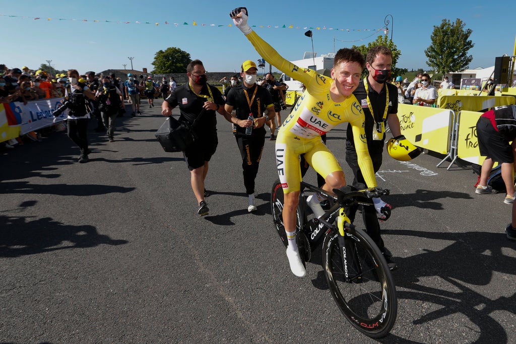 “I was just super happy it was finished,” Pogacar said. “Actually it went fast, there was so much support on the course and I was enjoying every kilometre even though I was suffering. It was super hot but I was so happy when I crossed the line that I cannot describe it.