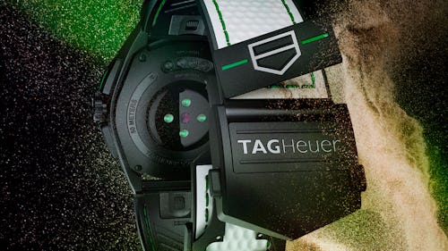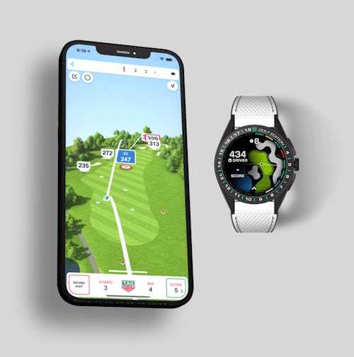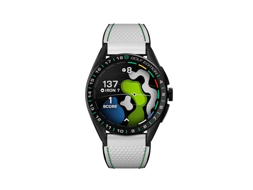 The smartwatch is clearly designed for golfers, with its dimpled white watch band that resembles a golf ball. If that’s too on the nose, you can just switch to a more discreet black band. Tag Heuer also includes a built-in ball marker that slots right into the strap’s buckle so you always have a convenient way to keep track of your balls on the green.
