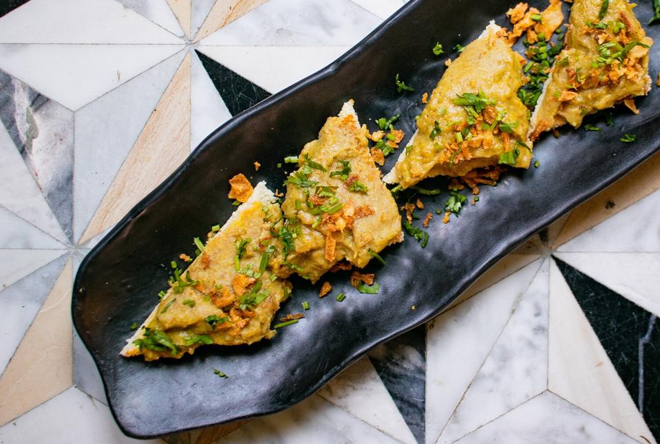 The bar serves up an array of exotic spiced cocktails and the sake, beer and wine lists are created to match the intensity of the seasonings. The brunch menu features pao, Indian-style street sandwiches with chili ketchup and masala fries.