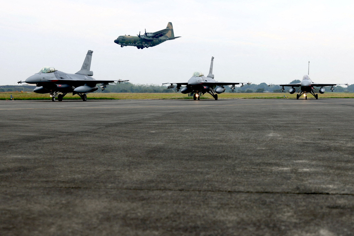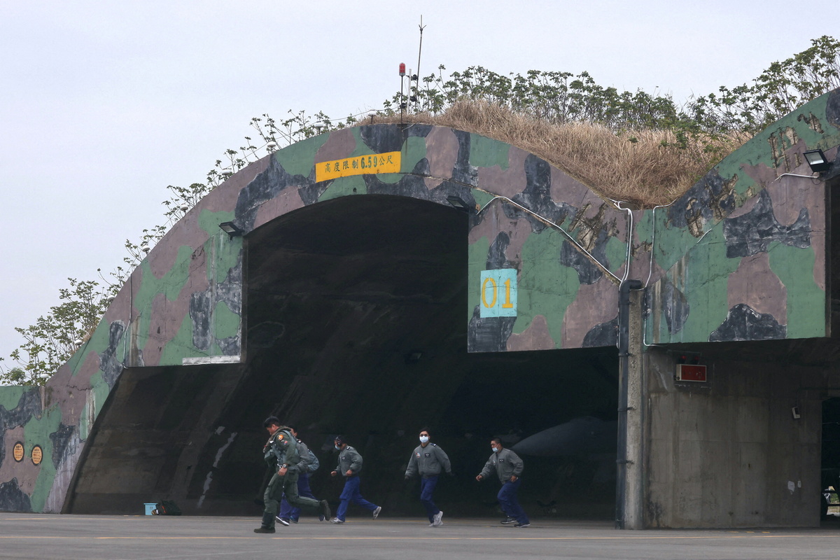 Before takeoff, flight crews at a base in the southern city of Chiayi - home to U.S.-made F-16 fighter jets that are frequently scrambled to intercept Chinese warplanes - rushed to ready aircraft as an alarm sounded.