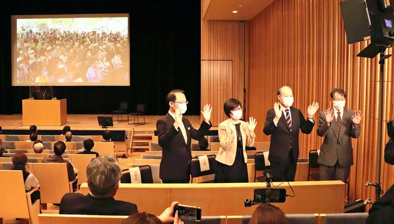 In Kanazawa, about 140 people, including Hatta's grandson, Shuichi Hatta, and Kanazawa Mayor Yukiyoshi Yamano, were present. The ceremony in Tainan was livestreamed on a large screen.