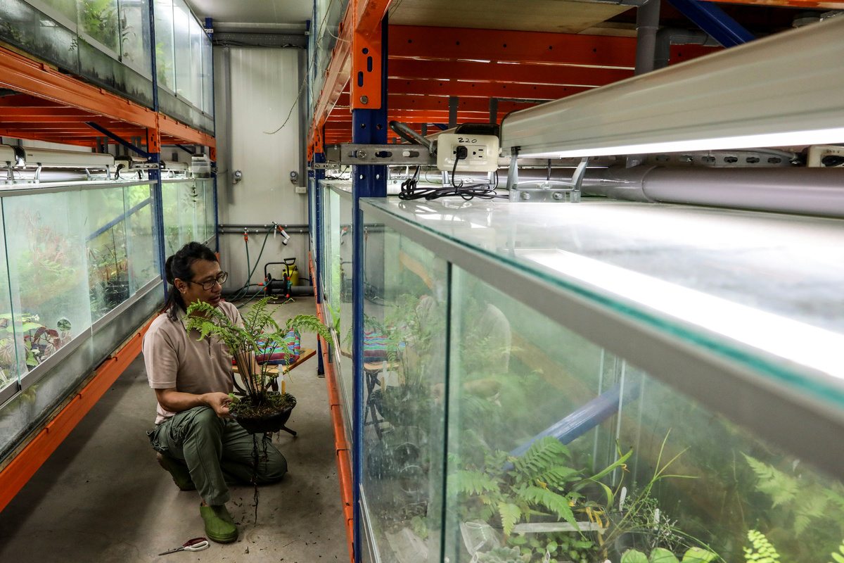 Cheng Ken Yu, the moss and bryophyta collection manager at Dr. Cecilia Koo Botanic Conservation Center, collects moss from a tree with her colleague Hung Hsin-chieh, a research assistant, in Qi Lin forest, Taitung, Taiwan, July 29, 2020. REUTERS/Ann WangA Bamboo Viper, a type of snake, lies on a tree in Qi Lin forest, in Taitung, Taiwan, July 29, 2020. REUTERS/Ann Wang Hung Hsin-Chieh, a research assistant who works at Dr. Cecilia Koo Botanic Conservation Center, searches for a plant in Shi Qiu Island, Taitung, Taiwan, July 31, 2020. REUTERS/Ann WangBryum, a type of bryophyta, is pictured inside a nursery at Dr. Cecilia Koo Botanic Conservation Center in Pingtung, Taiwan, July 24, 2020. REUTERS/Ann WangPlants stand inside a greenhouse at Dr. Cecilia Koo Botanic Conservation Center in Pingtung, Taiwan, July 23, 2020. REUTERS/Ann WangAn orchard stands inside a greenhouse at Dr. Cecilia Koo Botanic Conservation Center in Pingtung, Taiwan, July 24, 2020. REUTERS/Ann WangHung Hsin-Chieh, a research assistant at Dr. Cecilia Koo Botanic Conservation Center, takes care of a fern that he collected from a forest, in a nursery at Dr. Cecilia Koo Botanic Conservation Center in Pingtung, Taiwan, July 24, 2020. REUTERS/Ann WangHung Hsin-Chieh, a research assistant at Dr. Cecilia Koo Botanic Conservation Center, observes plants that he collected from Qi Lin forest, in his hotel room in Taitung, Taiwan, July 30, 2020. REUTERS/Ann WangOvergrown plants sit inside a greenhouse at Dr. Cecilia Koo Botanic Conservation Center in Pingtung, Taiwan, July 23, 2020. REUTERS/Ann WangHung Hsin-Chieh, a research assistant at Dr. Cecilia Koo Botanic Conservation Center, prepares to carry his tools and camping equipment during a two expedition in Hapen forest, Taipei, Taiwan, August 2, 2020. REUTERS/Ann WangDr. Cecilia Koo Botanic Conservation Center employees Hung Hsin-chieh, a research assistant, and Cheng Ken Yu, the moss and bryophyta collection manager, make a log of the plants they collected from Jin Shui forest earlier that day, at their campsite in Pingtung, Taiwan, September 10, 2020. "We hope that these species have a chance to return to their original habitat. Or one day, when we wish to create a (new) habitat, these species are able to live there happily," said Ken Yu. REUTERS/Ann WangCheng Ken Yu, the moss and bryophyta collection manager at Dr. Cecilia Koo Botanic Conservation Center, observes moss on a rock in Jin Shui forest, in Pingtung, Taiwan, September 10, 2020. Yu said some of the plants they collect may have properties people can use, "Then we'll have these species that we can use. Or perhaps one day when a certain habitat needs this specific species, we can provide it." REUTERS/Ann Wang Hung Hsin-chieh, a research assistant who works for Dr. Cecilia Koo Botanic Conservation Center, wakes up after spending the night camping in Jin Shui forest in Pingtung, Taiwan, September 11, 2020. REUTERS/Ann WangHung Hsin-Chieh, who works as a research assistant at Dr. Cecilia Koo Botanic Conservation Center, looks at his phone as he walks back to his campsite where he is staying in Jin Shui forest, Pingtung, Taiwan, September 10, 2020. REUTERS/Ann WangSheng Sian Dai, a senior collection manager at Dr. Cecilia Koo Botanic Conservation Center, waters plants in a nursery where he works, in Pingtung, Taiwan, July 23, 2020. REUTERS/Ann WangHung Hsin-chieh, a research assistant at Dr. Cecilia Koo Botanic Conservation Center, prepares to cook dinner over a campfire in Jin Shui forest where they are camping, in Pingtung, Taiwan, September 10, 2020. REUTERS/Ann WangHung Hsin-chieh, a research assistant at Dr. Cecilia Koo Botanic Conservation Center, climbs a tree to collect branches for a campfire in Jin Shui forest, in Pingtung, Taiwan, September 10, 2020. REUTERS/Ann WangPlants sit inside a greenhouse at Dr. Cecilia Koo Botanic Conservation Center in Pingtung, Taiwan, July 23, 2020. REUTERS/Ann WangHung Hsin-Chieh, a research assistant at Dr. Cecilia Koo Botanic Conservation Center, and his colleagues, share a meal in the canteen of a boat as they travel back to Keelung after collecting Lycoris sprengeri in Dongyin, Matsu, Taiwan, August 18, 2020. REUTERS/Ann WangDr. Cecilia Koo Botanic Conservation Center employees Hung Hsin-chieh, a research assistant and Cheng Ken Yu, the moss and bryophyta collection manager, walk through Qi Lin forest in Taitung, Taiwan, July 29, 2020. REUTERS/Ann Wang