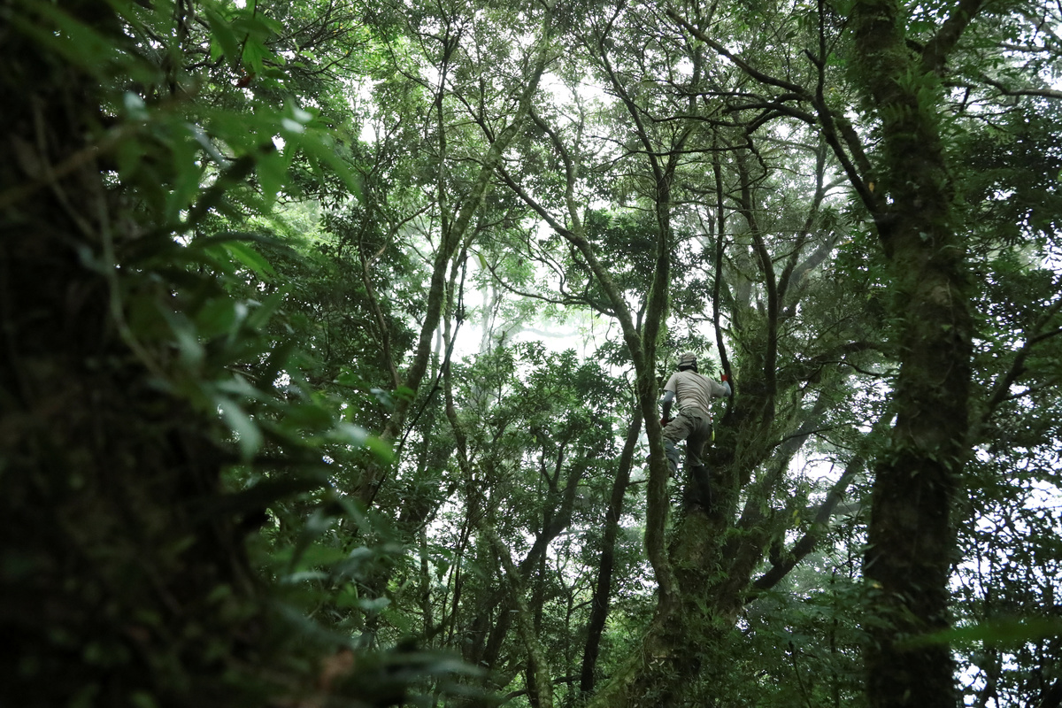 Hung Hsin-chieh, a research assistant who works for Dr. Cecilia Koo Botanic Conservation Center, climbs a tree as he looks for endangered plants to collect in Jin Shui forest, Pingtung, Taiwan, September 11, 2020. "Not everyone can get to the places I go to. I can stay a long time out in the wild, in the mountains or forests. I go in scattered directions. I am very good at climbing trees. Not everyone can climb trees," Hung said. REUTERS/Ann Wang