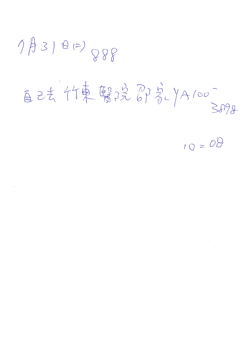 A combination picture shows a scanned copy of a note written by Chen Hong-zhi, 26, who suffers from short-term memory loss, detailing his day on July 31, where he removed 3898 weeds in the morning and 888 in the afternoon, went to the hospital on his own, and received T$100 ($3.2) for helping a friend (L), and Dr Lin Ming-teng, head of the psychiatry department at Taipei Veterans General Hospital, talking to Chen Hong-zhi after a medical appointment at the hospital, in Hsinchu, Taiwan, July 31, 2018. The note reads: "July 31 go to hospital alone Shao's home YA 100 3898 10:08". REUTERS/Tyrone Siu EUTERS/Tyrone Siu