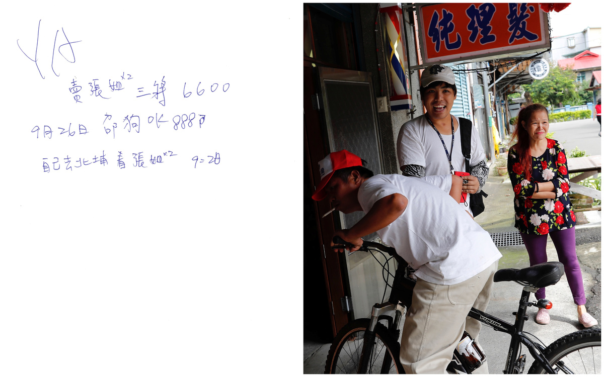 "I use the notebook to remember who I helped today, how much farm work I did, whether there was rain ... the notebook is my memory," said Chen, who lives with his stepmother, Wang Miao-cyong, 65, in a remote village in Hsinchu County, northwestern Taiwan.