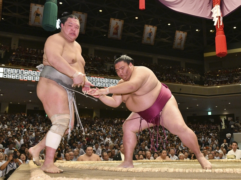 Meanwhile, yokozuma Kakuryu (4-2) was forced out by No. 3 maegashira Daieisho (2-4), giving Daieisho his first kinboshi win over a yokozuna.