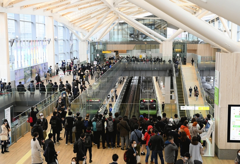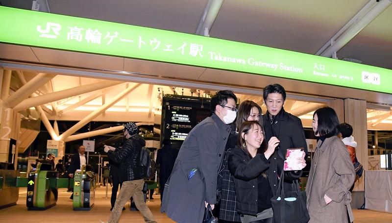1. People gather at the newly opened JR Takanawa Gateway Station in Minato Ward, Tokyo, on Saturday.