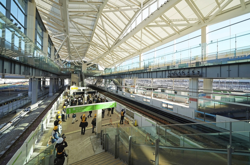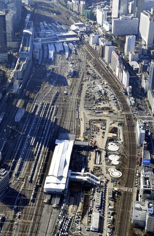 The construction site of the new Takanawa Gateway railroad station in Minato Ward, Tokyo, which is scheduled to open next spring on the Yamanote and Keihin-Tohoku lines, was opened to media organizations on Saturday.