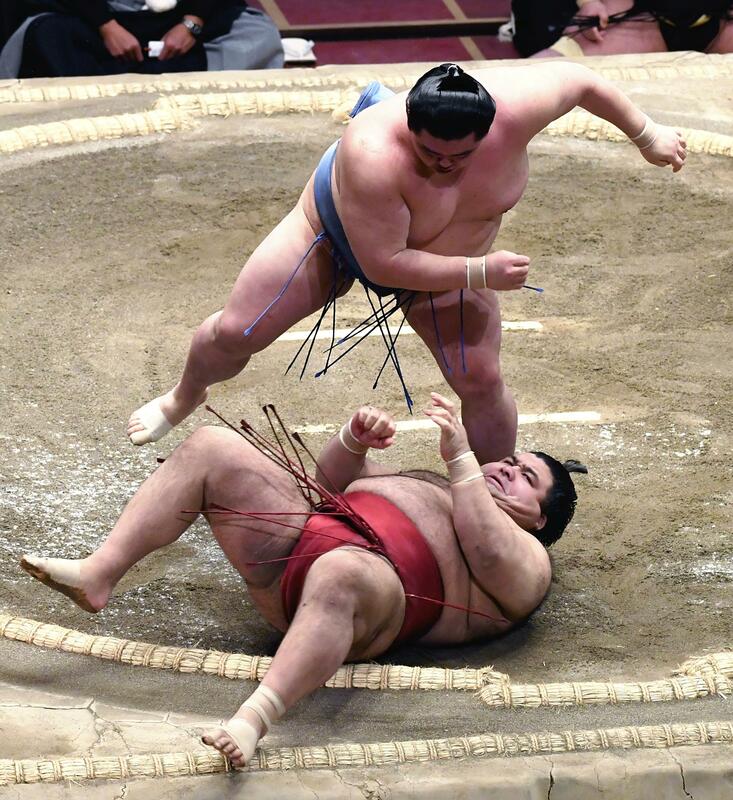 Meanwhile, ozeki Takakeisho, who needs a majority of wins to retain his rank, slapped and pushed his was past No. 4 maegashira Kiribayama (4-7) to pick up his seventh victory. A win on Thursday over No. 5 maegashira Okinoumi would allow him to remain at ozeki.