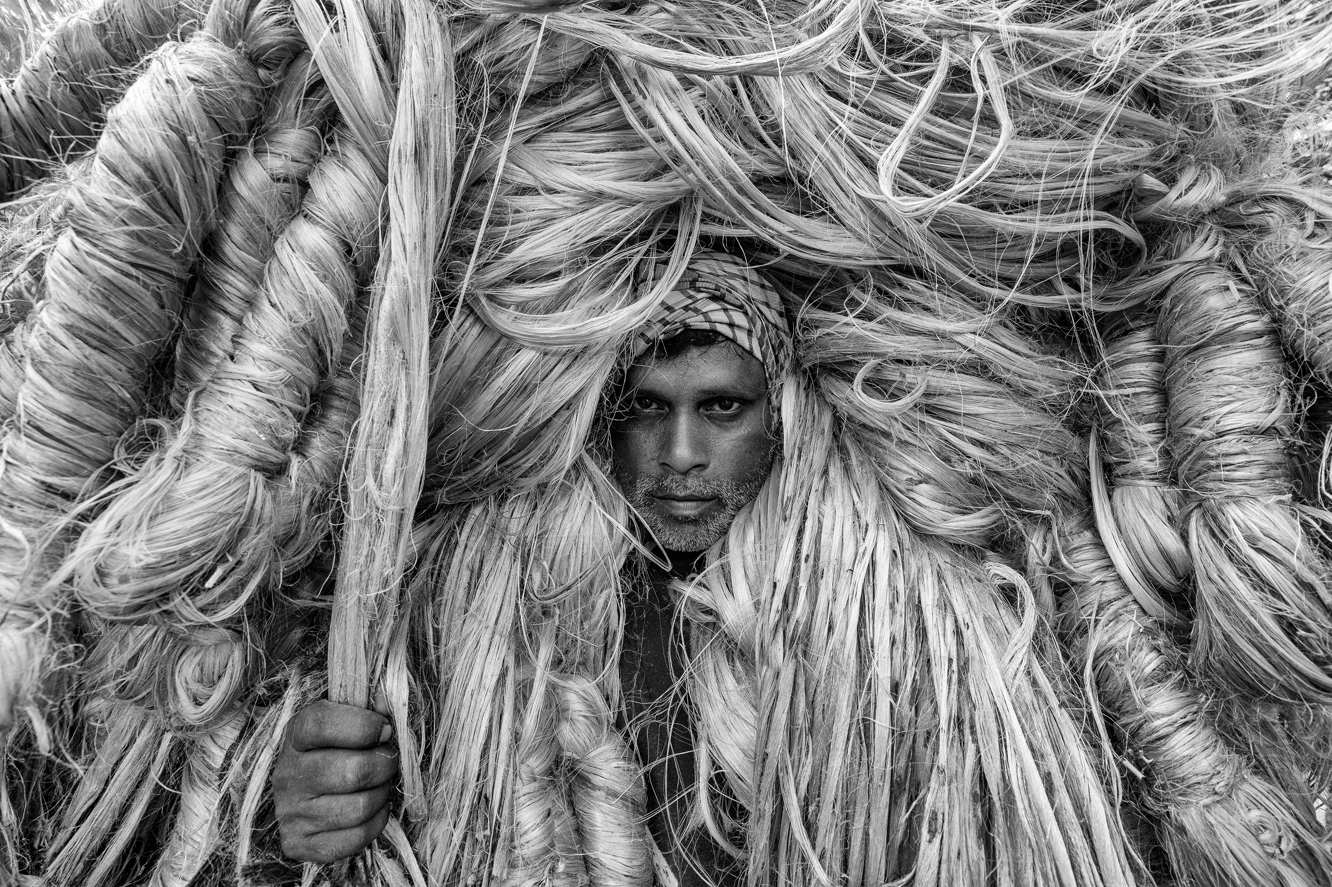 This Bangladeshi worker isn’t wearing a giant, golden wig. He’s carrying around 50 kilograms of jute – a heavy, flax-like fibre often used to manufacture high-end rugs, and other products that require tough, weighty thread.