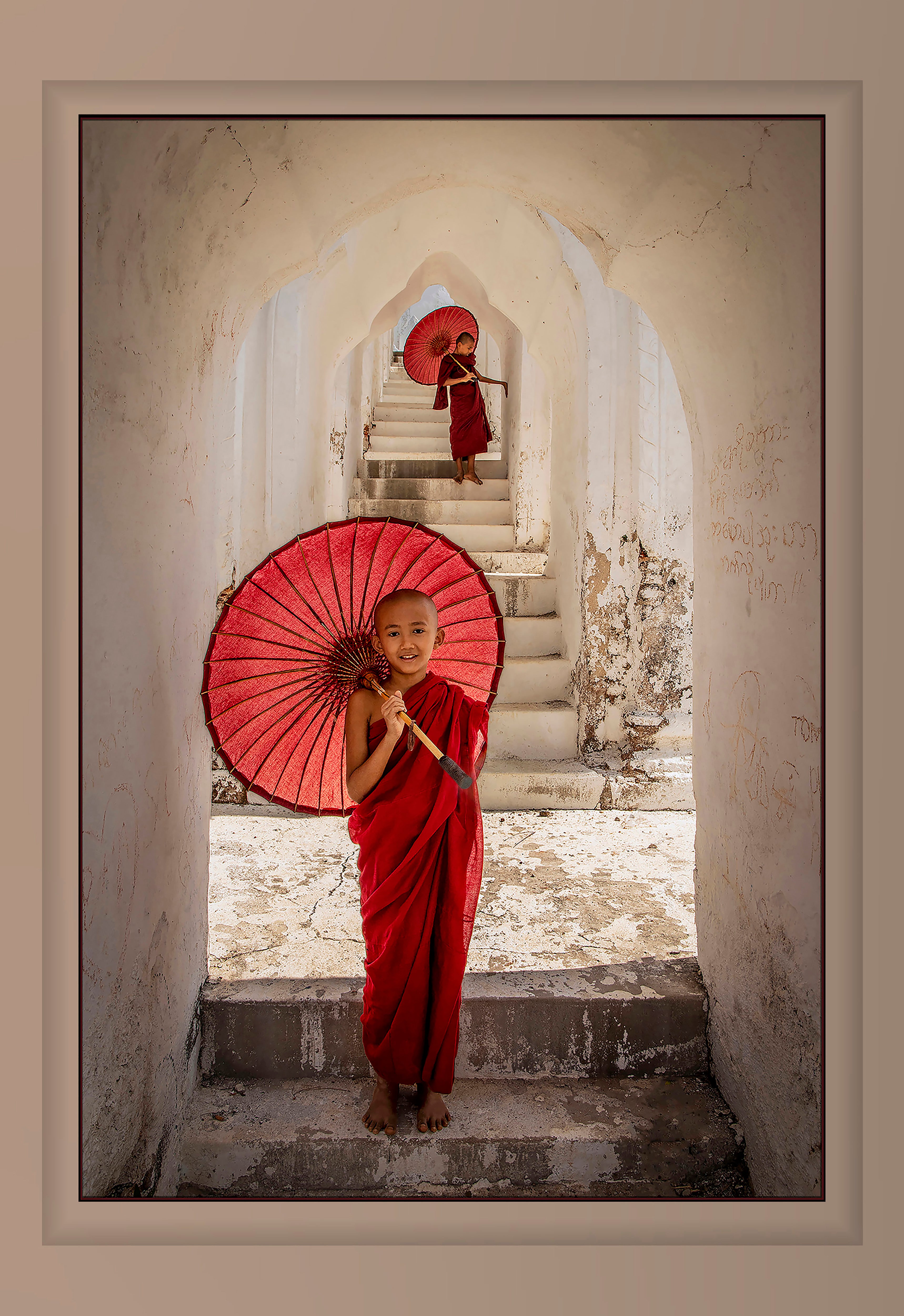 John Powers captured this image as two novice monks wandered the corridors of their temple one sunny afternoon in Myanmar.