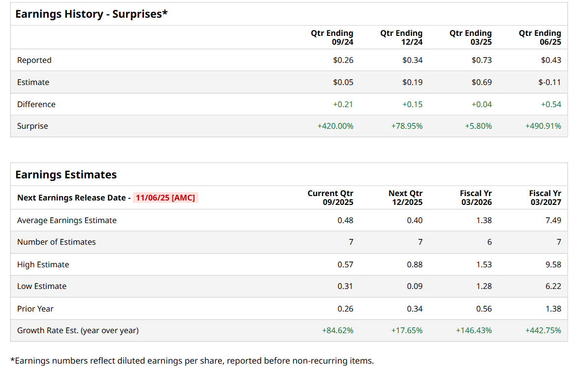 Valued at a market cap of $48 billion, Take-Two Interactive Software, Inc. (TTWO) is a leading global video game publisher and developer known for creating, publishing, and marketing interactive entertainment content. The New York-based company generates revenue through digital and physical game sales, in-game purchases, subscriptions, and licensing. It is scheduled to announce its fiscal Q2 earnings for 2026 after the market closes on Thursday, Nov. 6.