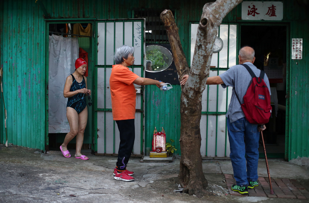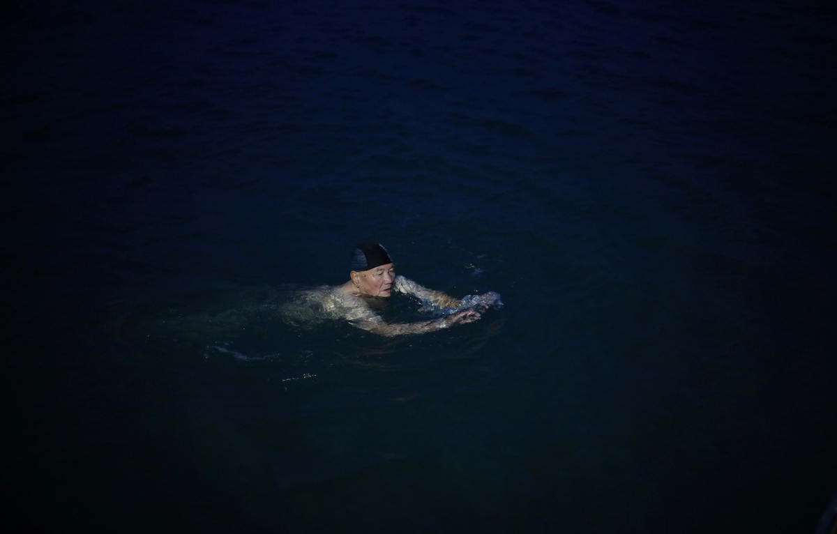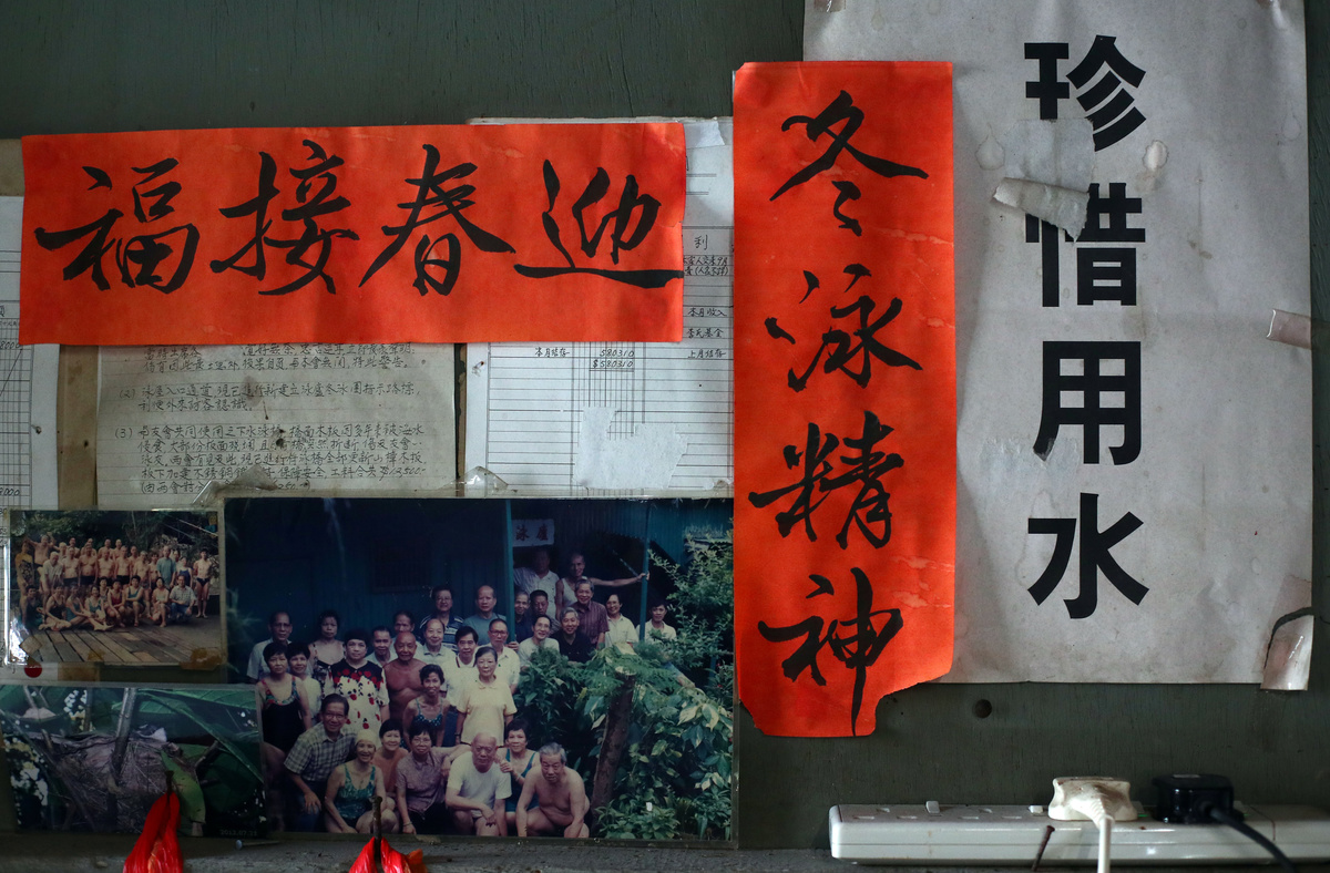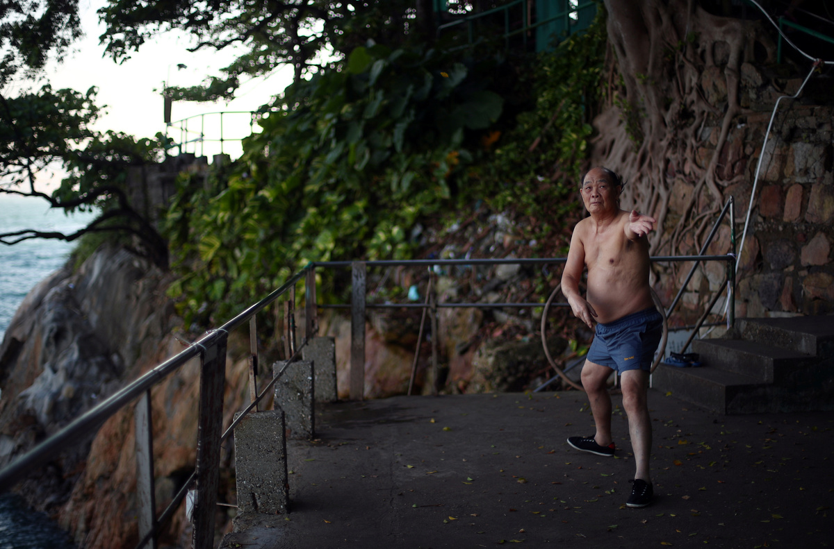 Old photographs of swimmers are seen on the wall of the communal room at the Sai Wan Swimming Shed in Hong Kong, China, October 4, 2018. REUTERS/Hannah McKay A man exercises before swimming at the Sai Wan Swimming Shed in Hong Kong, China, October 4, 2018. REUTERS/Hannah McKay Tim Man Kwok, 72, lights incense next to a statue of the Chinese God of Land at the Sai Wan Swimming Shed in Hong Kong, China, October 4, 2018. Man Kwok said he has been coming to the swimming shed for 28 years. REUTERS/Hannah McKay A man exercises at the Sai Wan Swimming Shed in Hong Kong, China, October 5, 2018. REUTERS/Hannah McKay Lockers are seen in the men's changing room at the Sai Wan Swimming Shed in Hong Kong, China, October 4, 2018. REUTERS/Hannah McKay Clothes hang next to a collage of photographs of swimmers on the wall in the communal room at the Sai Wan Swimming Shed in Hong Kong, China, October 4, 2018. REUTERS/Hannah McKay A man prepares to swim in the sea at the Sai Wan Swimming Shed in Hong Kong, China, October 4, 2018. REUTERS/Hannah McKay Yin Sing, 83, looks out to sea from the Sai Wan Swimming Shed in Hong Kong, China, October 4, 2018. REUTERS/Hannah McKay Yim Sui Hing, 86, swims in the sea before dawn at the Sai Wan Swimming Shed in Hong Kong, China, October 7, 2018. REUTERS/Hannah McKay Lin Sik Oi, 75, walks along the wooden pier to swim at the Sai Wan Swimming Shed in Hong Kong, China, October 5, 2018. Sik Oi said she has been coming to the swimming shed for 30 years. "I swim here to keep fit. We come here for exercise every day, all year round," she said. REUTERS/Hannah McKay Swimmers play cards in the communal room at the Sai Wan Swimming Shed in Hong Kong, China, October 5, 2018. REUTERS/Hannah McKay A man prepares to swim at dawn at the Sai Wan Swimming Shed in Hong Kong, China, October 7, 2018. REUTERS/Hannah McKay A woman swims as a plastic bottle floats in the sea at the Sai Wan Swimming Shed in Hong Kong, China, October 7, 2018. REUTERS/Hannah McKay People prepare to swim at the Sai Wan Swimming Shed in Hong Kong, China, October 5, 2018. REUTERS/Hannah McKay A woman prepares to swim at the Sai Wan Swimming Shed in Hong Kong, China, October 7, 2018. REUTERS/Hannah McKay A man prepares to swim at the Sai Wan Swimming Shed in Hong Kong, China, October 7, 2018. REUTERS/Hannah McKay A man exercises at the Sai Wan Swimming Shed in Hong Kong, China, October 7, 2018. REUTERS/Hannah McKay Dennis Yeung, 58, climbs out of the sea at the Sai Wan Swimming Shed in Hong Kong, China, October 7, 2018. "I feel there is more plastic in the sea," said Yeung. "I have noticed a difference since I've been swimming here from when I was small... There is quite a big difference. In the future, it will be more of a problem too." REUTERS/Hannah McKay Yin Sing, 83, showers in the men's changing room at the Sai Wan Swimming Shed in Hong Kong, China, October 5, 2018. "I've been coming here for 40 years, every single day," he said. "I walk up the hill to come here, even on a Sunday." REUTERS/Hannah McKay A swimmer enters the sea before dawn at the Sai Wan Swimming Shed in Hong Kong, China, October 7, 2018. REUTERS/Hannah McKa