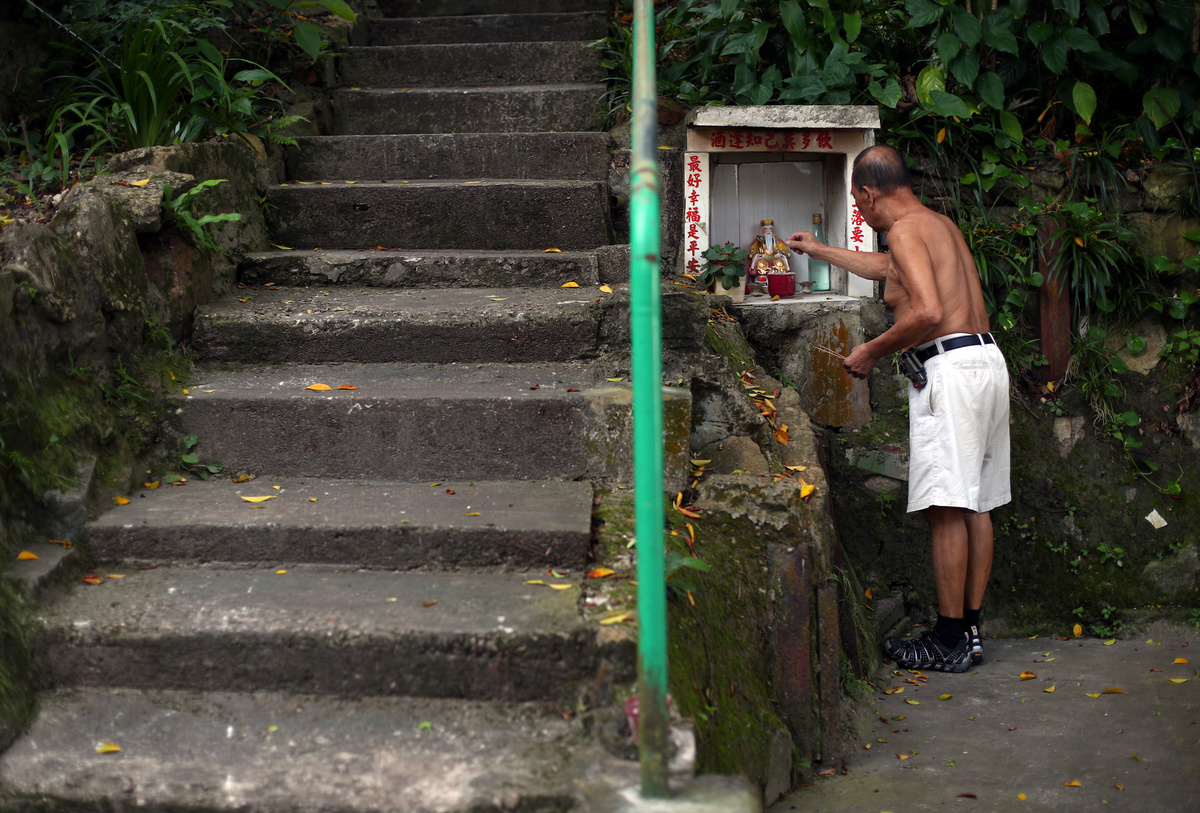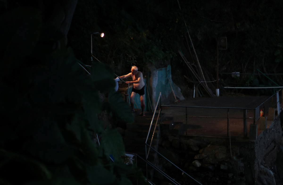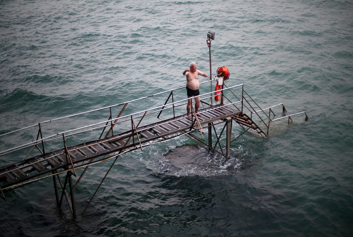 Old photographs of swimmers are seen on the wall of the communal room at the Sai Wan Swimming Shed in Hong Kong, China, October 4, 2018. REUTERS/Hannah McKay A man exercises before swimming at the Sai Wan Swimming Shed in Hong Kong, China, October 4, 2018. REUTERS/Hannah McKay Tim Man Kwok, 72, lights incense next to a statue of the Chinese God of Land at the Sai Wan Swimming Shed in Hong Kong, China, October 4, 2018. Man Kwok said he has been coming to the swimming shed for 28 years. REUTERS/Hannah McKay A man exercises at the Sai Wan Swimming Shed in Hong Kong, China, October 5, 2018. REUTERS/Hannah McKay Lockers are seen in the men's changing room at the Sai Wan Swimming Shed in Hong Kong, China, October 4, 2018. REUTERS/Hannah McKay Clothes hang next to a collage of photographs of swimmers on the wall in the communal room at the Sai Wan Swimming Shed in Hong Kong, China, October 4, 2018. REUTERS/Hannah McKay A man prepares to swim in the sea at the Sai Wan Swimming Shed in Hong Kong, China, October 4, 2018. REUTERS/Hannah McKay Yin Sing, 83, looks out to sea from the Sai Wan Swimming Shed in Hong Kong, China, October 4, 2018. REUTERS/Hannah McKay Yim Sui Hing, 86, swims in the sea before dawn at the Sai Wan Swimming Shed in Hong Kong, China, October 7, 2018. REUTERS/Hannah McKay Lin Sik Oi, 75, walks along the wooden pier to swim at the Sai Wan Swimming Shed in Hong Kong, China, October 5, 2018. Sik Oi said she has been coming to the swimming shed for 30 years. "I swim here to keep fit. We come here for exercise every day, all year round," she said. REUTERS/Hannah McKay Swimmers play cards in the communal room at the Sai Wan Swimming Shed in Hong Kong, China, October 5, 2018. REUTERS/Hannah McKay A man prepares to swim at dawn at the Sai Wan Swimming Shed in Hong Kong, China, October 7, 2018. REUTERS/Hannah McKay A woman swims as a plastic bottle floats in the sea at the Sai Wan Swimming Shed in Hong Kong, China, October 7, 2018. REUTERS/Hannah McKay People prepare to swim at the Sai Wan Swimming Shed in Hong Kong, China, October 5, 2018. REUTERS/Hannah McKay A woman prepares to swim at the Sai Wan Swimming Shed in Hong Kong, China, October 7, 2018. REUTERS/Hannah McKay A man prepares to swim at the Sai Wan Swimming Shed in Hong Kong, China, October 7, 2018. REUTERS/Hannah McKay A man exercises at the Sai Wan Swimming Shed in Hong Kong, China, October 7, 2018. REUTERS/Hannah McKay Dennis Yeung, 58, climbs out of the sea at the Sai Wan Swimming Shed in Hong Kong, China, October 7, 2018. "I feel there is more plastic in the sea," said Yeung. "I have noticed a difference since I've been swimming here from when I was small... There is quite a big difference. In the future, it will be more of a problem too." REUTERS/Hannah McKay Yin Sing, 83, showers in the men's changing room at the Sai Wan Swimming Shed in Hong Kong, China, October 5, 2018. "I've been coming here for 40 years, every single day," he said. "I walk up the hill to come here, even on a Sunday." REUTERS/Hannah McKay A swimmer enters the sea before dawn at the Sai Wan Swimming Shed in Hong Kong, China, October 7, 2018. REUTERS/Hannah McKa