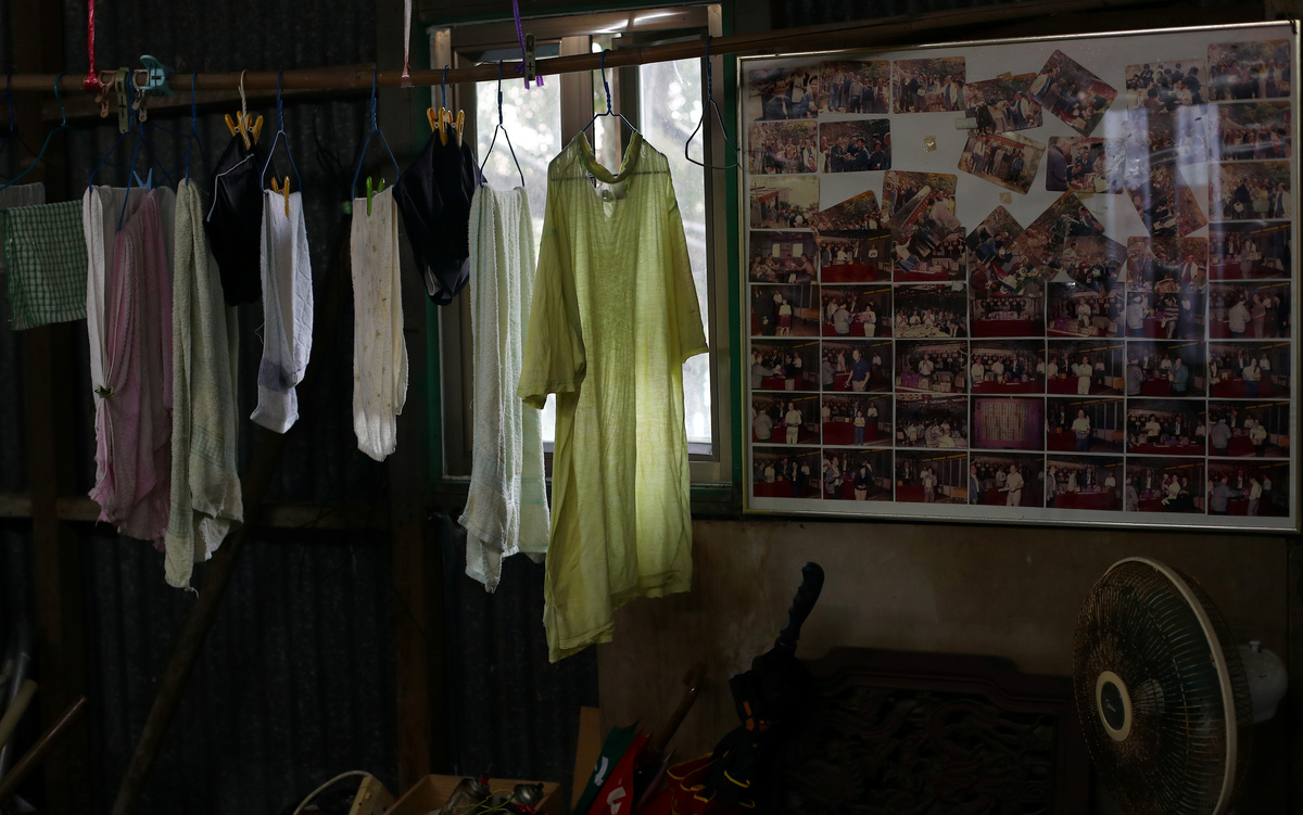 Sandy Lam, 68, hangs a towel to dry in the mens changing room at the Sai Wan Swimming Shed in Hong Kong, China, October 4, 2018. Lam said he has been coming to the swimming shed for 28 years. "We're all friends and we've known each other for a long time," he said. "We pay HK$150 ($19) per month which pays for the water and light in the shed, and for the changing rooms to be kept well." REUTERS/Hannah McKay