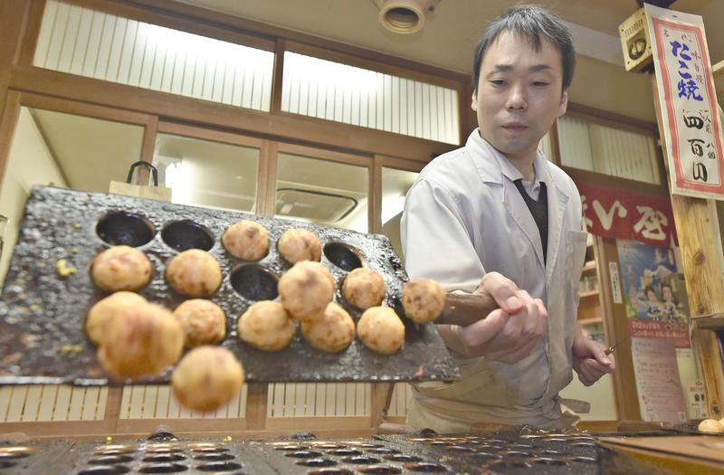 More foreign tourists have been visting Umaiya, a long-established shop selling takoyaki octopus balls in Kita Ward, Osaka, since it was featured in the 2016 Kyoto and Osaka Michelin Guide. It was the first time takoyaki shops had been featured by Michelin, which ranks restaurants and other eateries across the globe, and 11 outlets were included that year.