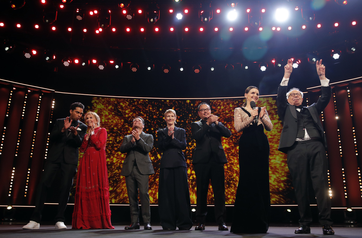 Festival director Dieter Kosslick and members of the International Jury Juliette Binoche, Trudie Styler, Rajendra Roy, Sandra Hueller, Justin Chang and Sebastian Lelio attend for the opening ceremony of the 69th Berlin Film Festival in Berlin, Germany, February 7, 2019. REUTERS/Hannibal Hanschke